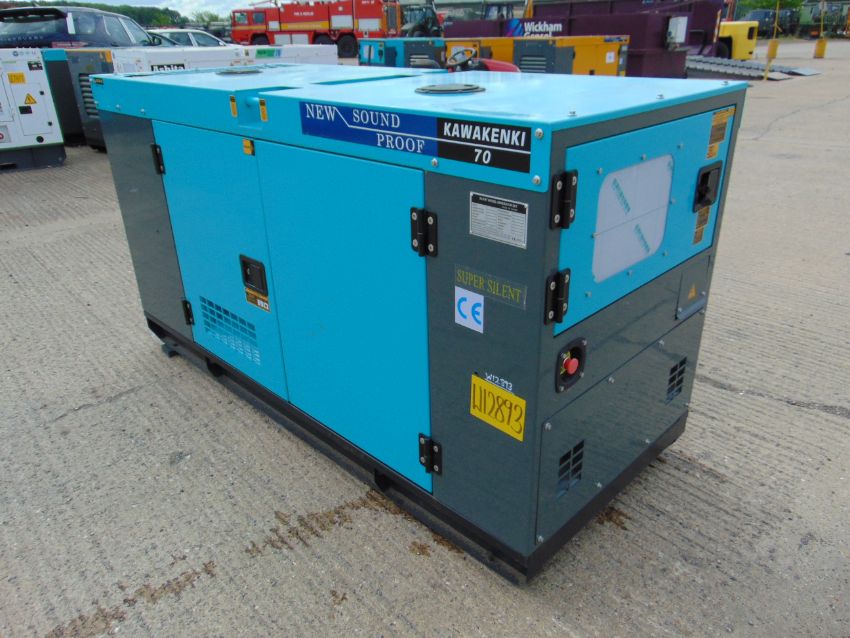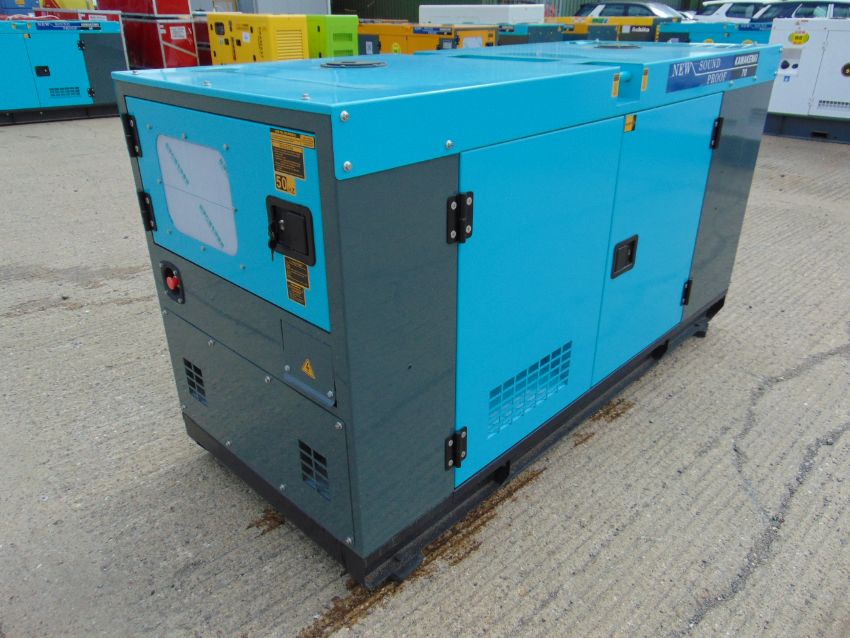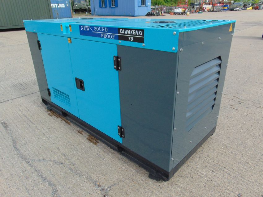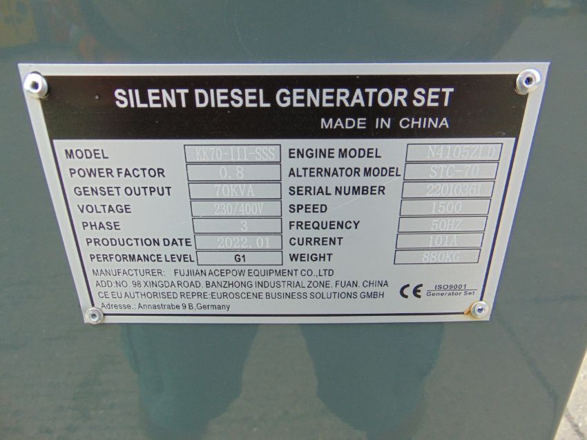 You are bidding on a 2022 UNISSUED 70 KVA 3 Phase Silent Diesel Generator Set. This generator is 3 phase 400/230 volt 50 Hz.