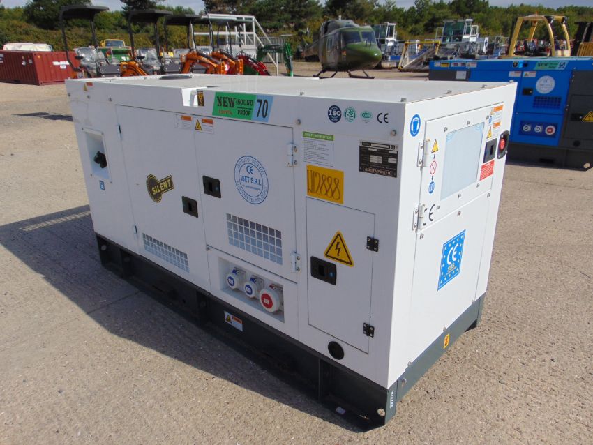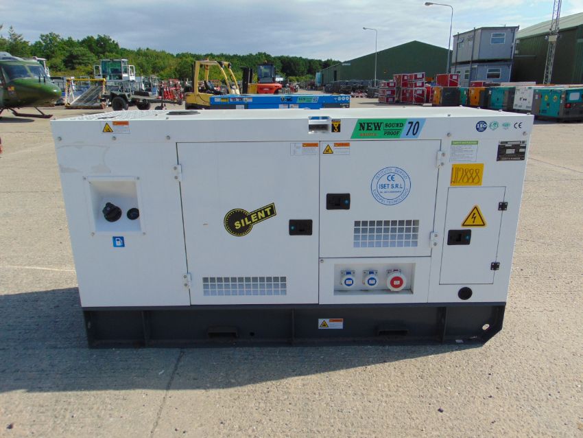 You are bidding on a 2021 UNISSUED 70 KVA 3 Phase Silent Diesel Generator Set. This generator is 3 phase 240Volt / 400 volt 50 Hz.