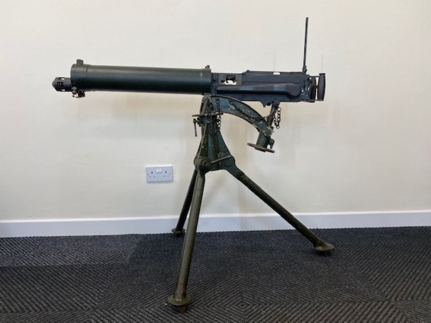 You are bidding on a Very Rare Vickers .303 machine gun, deactivated to current EU standards c/w deactivation certificate, tripod, ammunition belt, ammunition box, long range site and transit case.