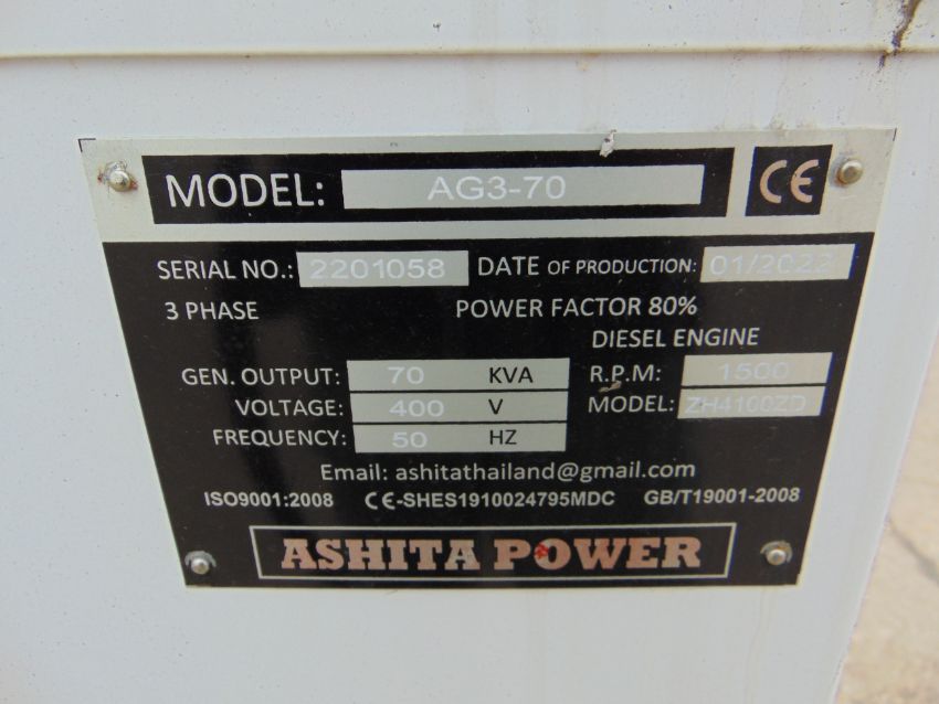 You are bidding on a 2022 UNISSUED 70 KVA 3 Phase Silent Diesel Generator Set. This generator is 3 phase 400 volt 50 Hz.