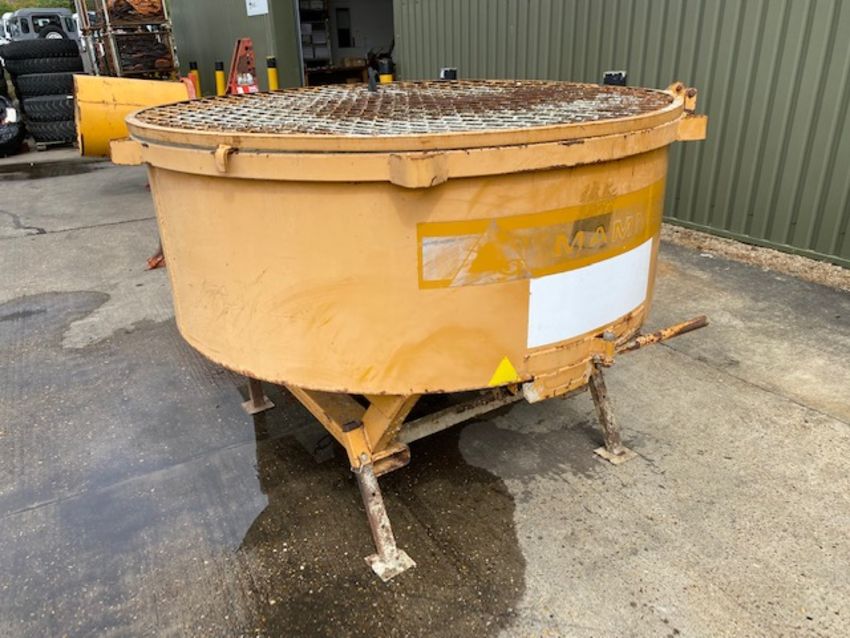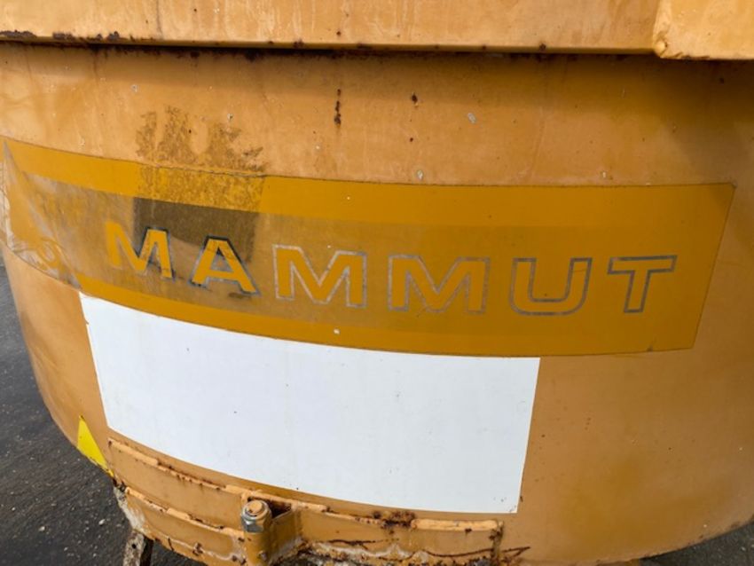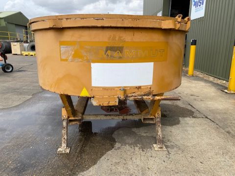 Mammut hydraulic pan cement mixer, for telehandler, c/w hdraulic pipes, grid cover and mixture release handle.