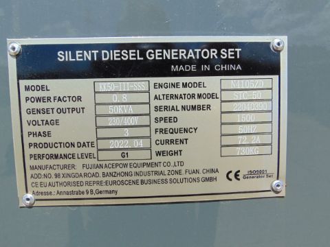 You are bidding on a 2022 UNISSUED 50 KVA 3 Phase Silent Diesel Generator Set. This generator is 3 phase 230/400 volt 50 Hz.