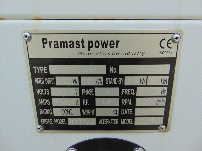 You are bidding on a 2021 UNISSUED 125 KVA 3 Phase Silent Diesel Generator Set. This generator is 3 phase 400/230 volt 50 Hz.