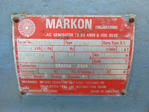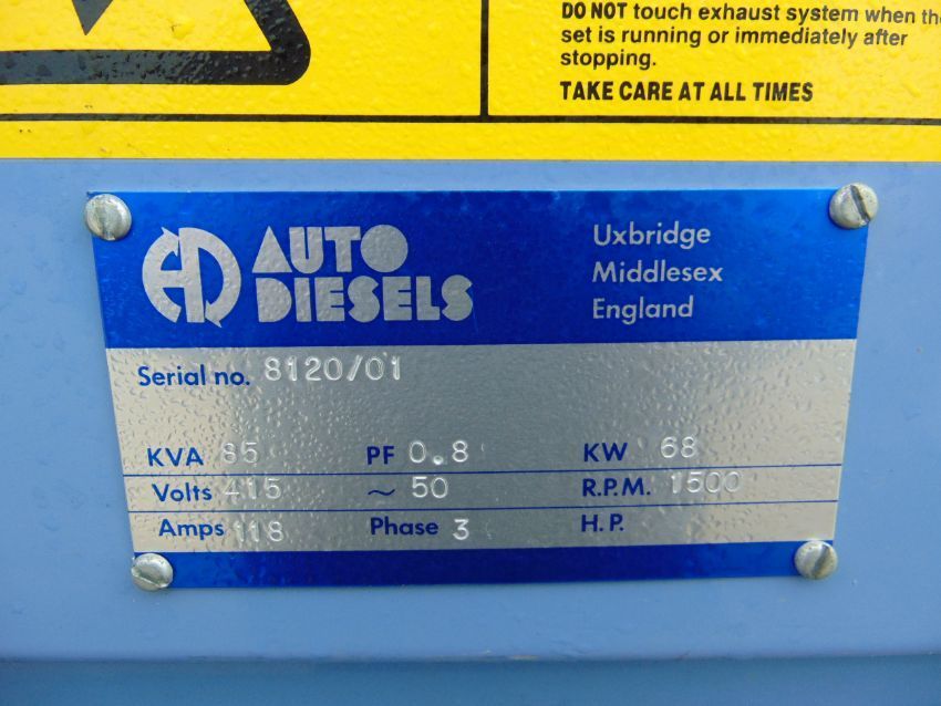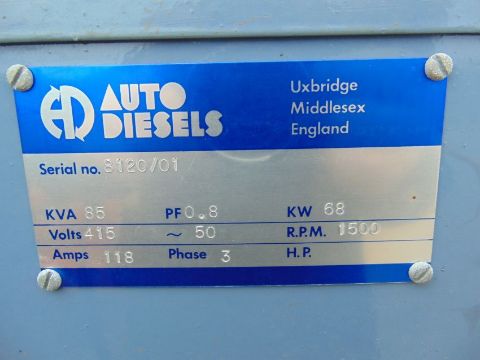 You are bidding on a Auto Diesel 85 KVA 68 Kw 3 Phase 415/240V Standby Automatic Mains Faliure Perkins Diesel Generator ONLY 807 HOURS!