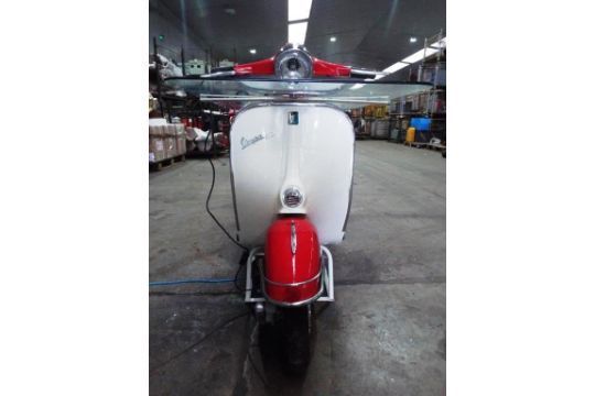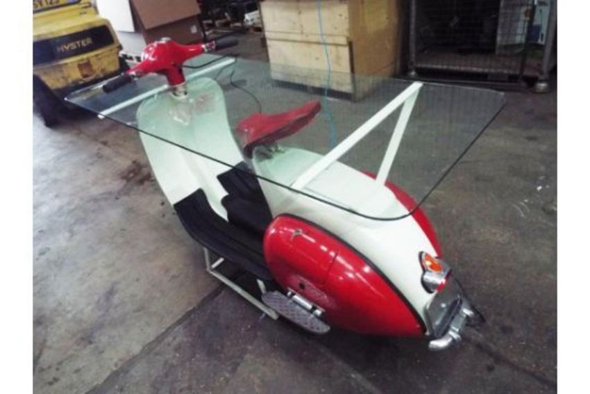 This is a Vespa 150 which has been tastefully converted into a glass top table, it comes complete with working front spot light and tail lights and would look superb as part of a bar, restaurant, reception area, man cave etc etc.