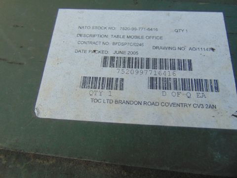 Terms: Full payment must be made within three days and removal within seven days otherwise storage charges will apply at GBP 28 per day **THERE ARE NO EXCEPTIONS**. This is a legally binding contract to purchase. If you are not sure please do not bid. We are unable to cancel your purchase after the auction closes. For further information or to view any other items at Witham MoD, contact Simon Chapple in sales on 01476 861361 / 07884493845 or email onlineauctions@mod-sales.com