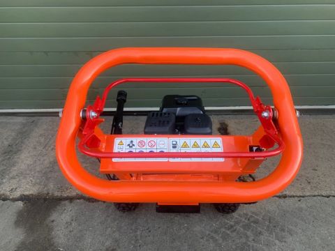 Engineered with the operator in mind, the sturdy frame has a wheelbase of only 80cm making access into most locations very easy. Large pneumatic tyres have been specified make transport of the machine to the jobsite easy. With a weight of only 110kg operation of the stump grinder is simple and straightforward. The hand brake is applied, which locks the drum brake on the left wheel, cleverly designed to allow for the machine to be arced from left to right across the stump milling it away easily by using the well-balanced weight of the machine to the operator’s advantage. The handle is fully adjustable to assist any likely arc of operation, allowing it to be adjusted to the most comfortable position for the operator depending on whether the stump is above or below ground level. The ergonomic handle can also be fully folded over to assist in storing the machine.