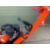 For operator safety, a full width chassis deflector curtain is fitted to prevent debris from being ejected from beneath the machine. All drive belts and the grinding wheel itself are also protected by guards. An essential for safe operation is the integrated “dead man’s handle” safety lever fitted to the handle. This must be permanently held for the machine to run. Without it the operators grip, the engine simply cuts out and stops operation.
