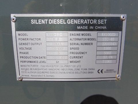 You are bidding on a 2022 UNISSUED 40 KVA 3 Phase Silent Diesel Generator Set. This generator is 3 phase 230/400 volt 50 Hz.