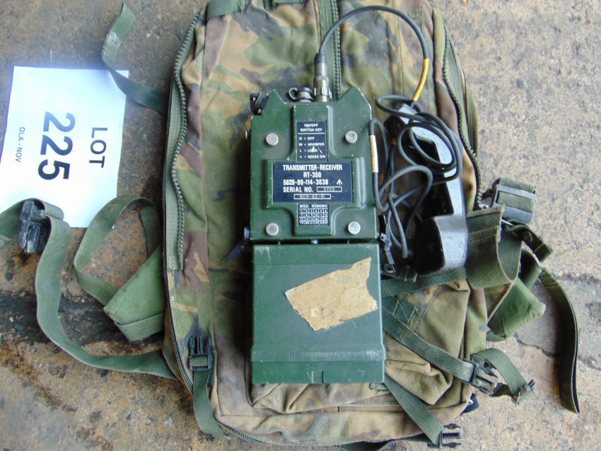 Clansman RT 350 Transmitter Reciever c/w battery and universal radio Rucksac