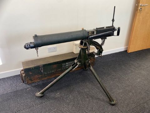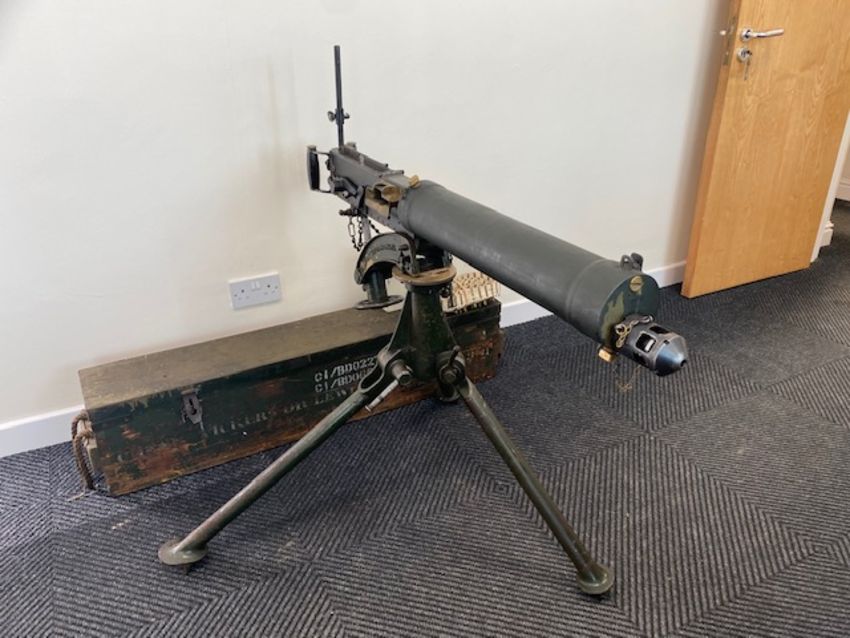 You are bidding on a Very Rare Vickers .303 machine gun, deactivated to current EU standards c/w deactivation certificate, tripod, ammunition belt, ammunition box and transit case.would make a wonderful display piece or an addition to any collection.or museum.