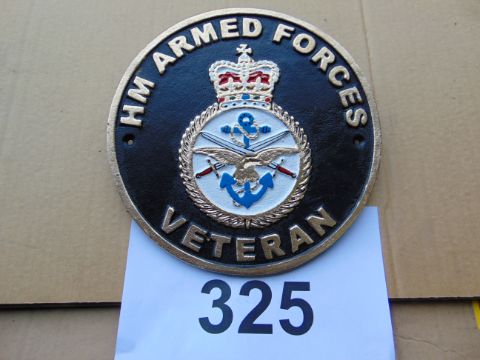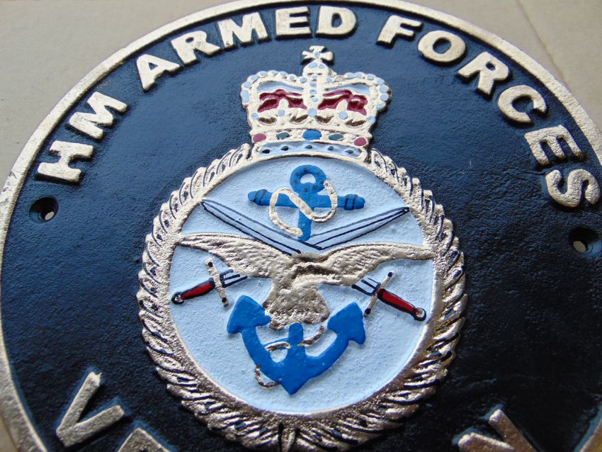 You are bidding for a hand painted Cast Iron H.M. Armed Forces Plaque.