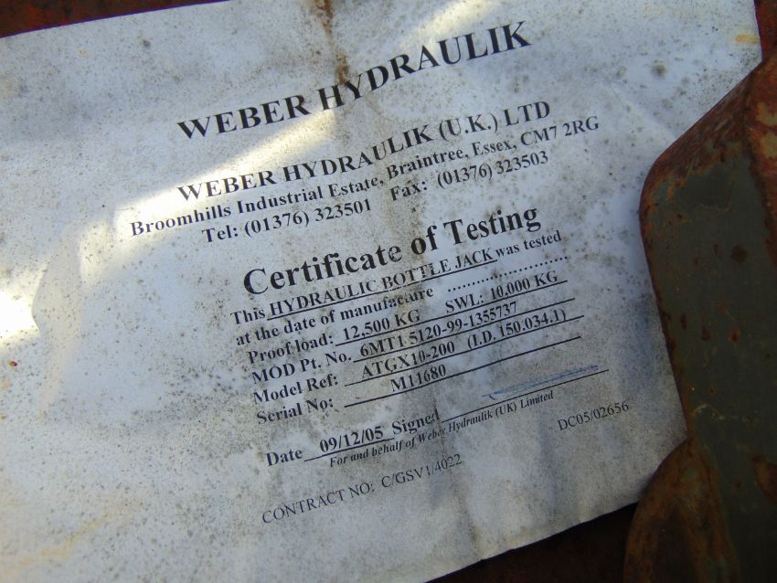 Unissued Weber 10t Hydraulic Jack