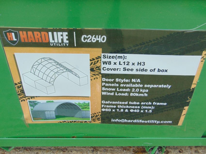 This Container Shelter 8m W x 12m L x 3m H P/No C2640 is unissued new old stock.