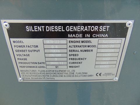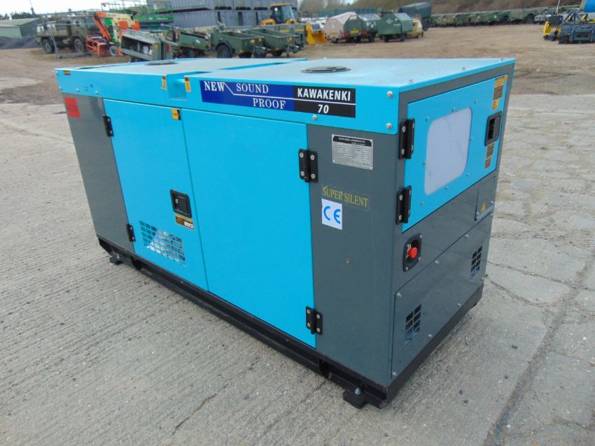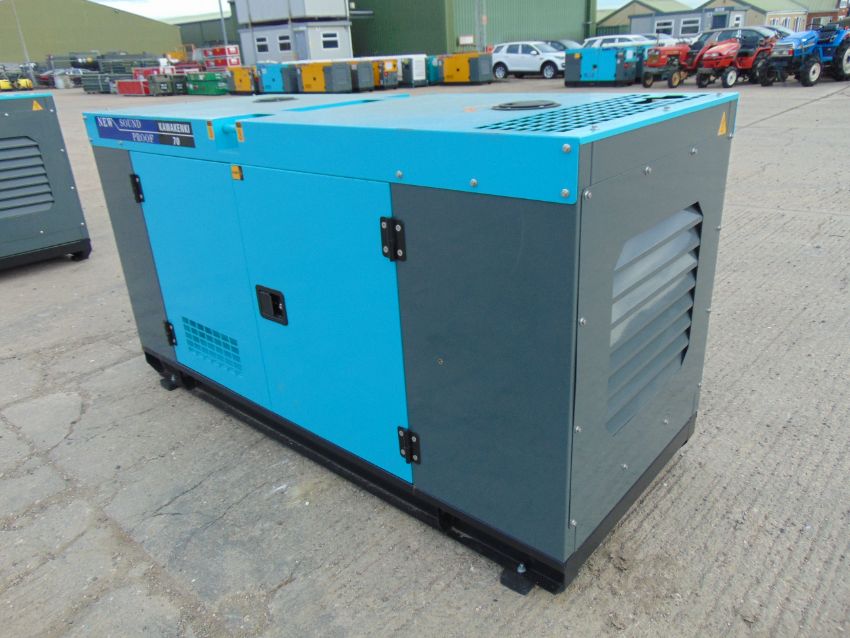 You are bidding on a 2022 UNISSUED 70 KVA 3 Phase Silent Diesel Generator Set. This generator is 3 phase 230/400 volt 50 Hz.