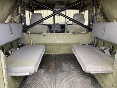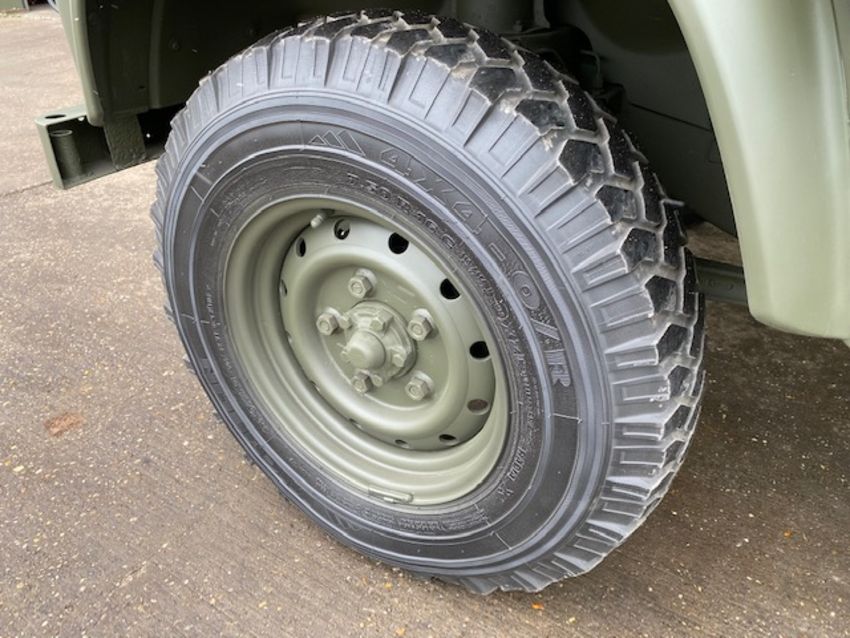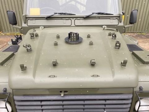 Fitted 300TDi 2.5 litre turbo Diesel engine, R380 5 speed gearbox, power steering, rear mounted spare wheel, G90 tyres on Wolf heavy duty rims, light guards, front steering protector guard, Jate rings, rear NATO hitch and electrics.