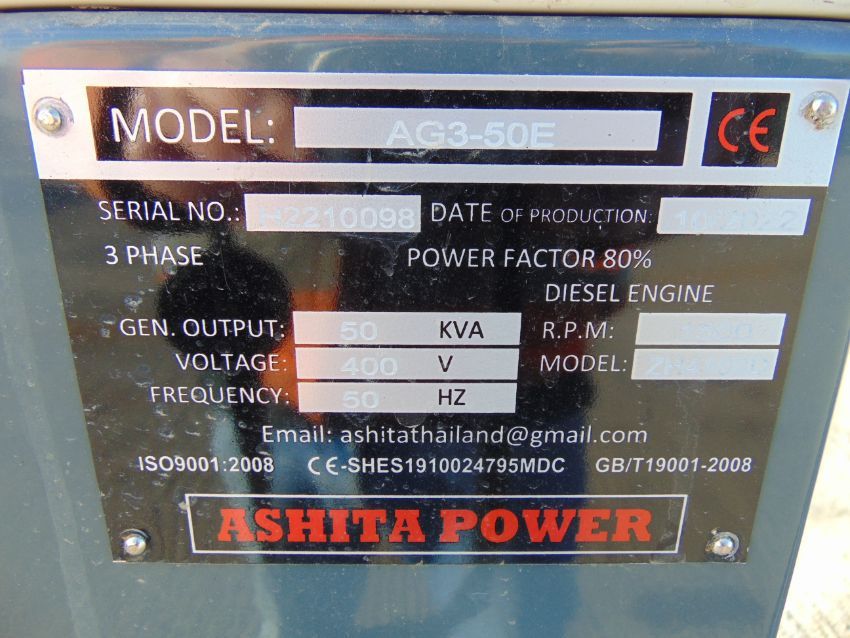 You are bidding on a 2022 UNISSUED 50 KVA 3 Phase Silent Diesel Generator Set. This generator is 3 phase 400 volt 50 Hz.