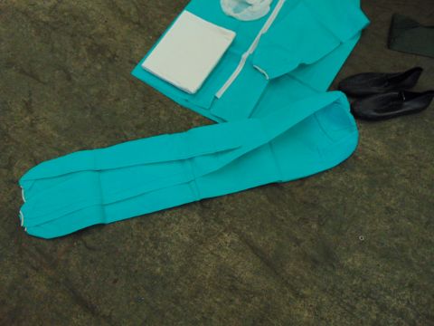 Disposable green blouse and trousers