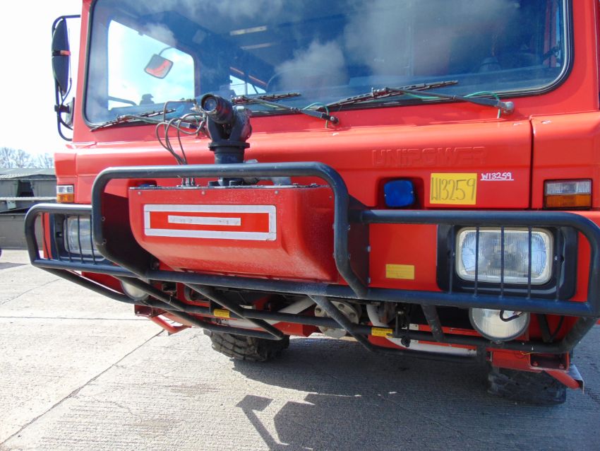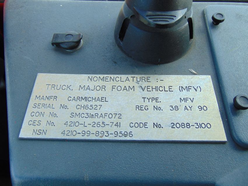 You are bidding on a recent release from the UK Ministry Of Defence a Alvis Unipower 6x6 Rapid Intervention Vehicle RIV Airport Fire Appliance ONLY 1,619 hours. The vehicle features automatic transmission and is powered by a Caterpillar Diesel engine.