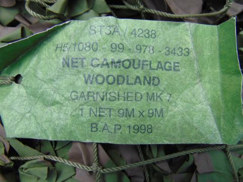 You are bidding on a Stillage of Original Camouflaged Woodland Netting 9m x 9m.