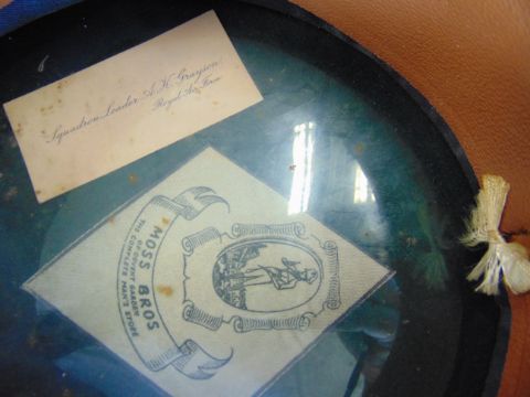 RAF Officers Cap made by Moss Bros c/w Badge. Named Squadron Leader A.K Grayson R.A.F