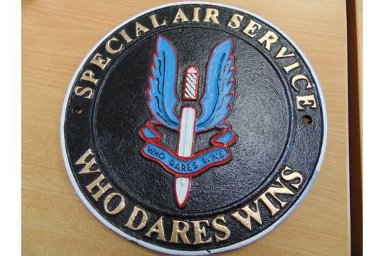 You are bidding for a SAS WHO DARES WIN CAST IRON HAND PAINTED WALL PLAQUE