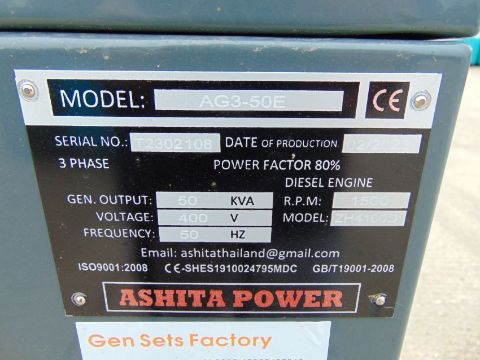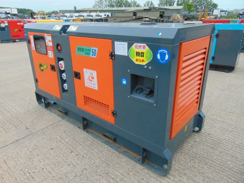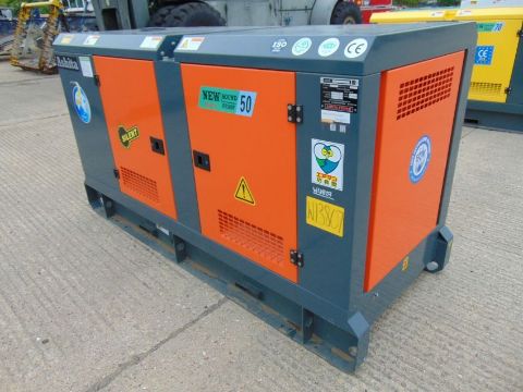 You are bidding on a 2023 UNISSUED 50 KVA 3 Phase Silent Diesel Generator Set. This generator is 3 phase 400 volt 50 Hz.