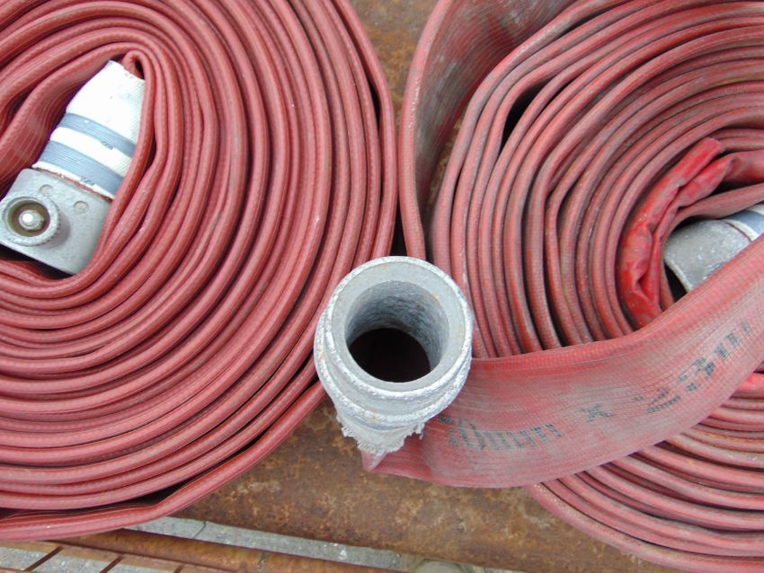 You are bidding on direct from the UK Fire and Rescue Service 3 x Angus 70mm x 23m Layflat Fire Hoses with Couplings.