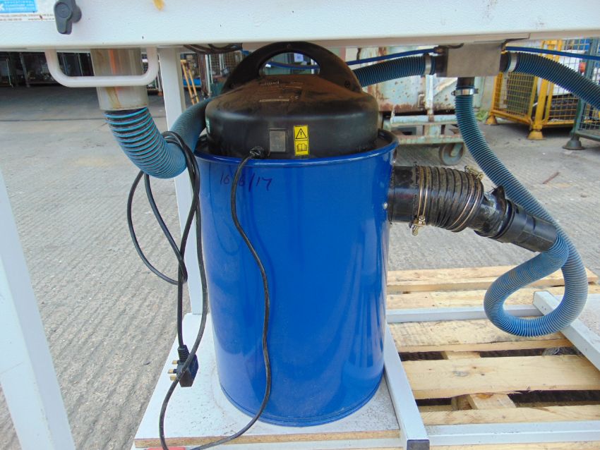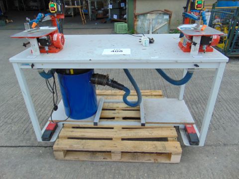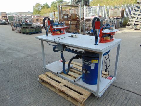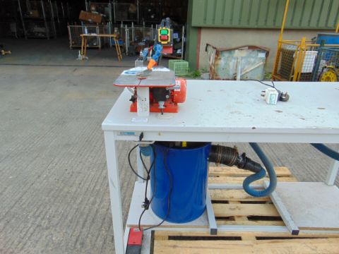 Work bench with 2x Hegner 240volt Scroll Saws, Schlepp Dust Extractor Foot Controls etc, From UK MoD.