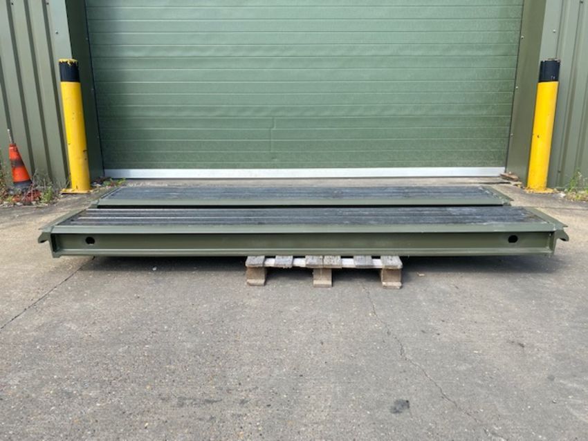 You are bidding on a Pair of Heavy duty Aluminium Infill Decks/Ramps recently released from UK MoD, ideal for use as ramps, extendable trailer deck infill panels, etc etc. fitted with anti-slip deck, lifting/securing holes, as new/unissued condition.