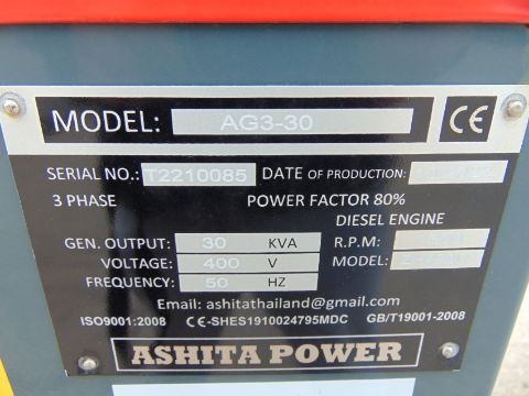 You are bidding on a 2022 UNISSUED 30 KVA 3 Phase Silent Diesel Generator Set. This generator is 3 phase 400 volt 50 Hz.
