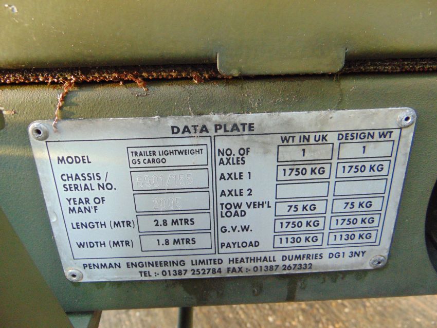 From UK MoD Reserve Stock Penman Trailer GS Light Weight Cargo Land Rover