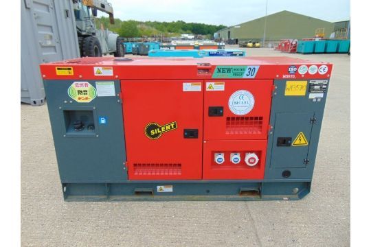 You are bidding on a 2022 new UNISSUED 30 KVA 3 Phase Silent Diesel Generator Set. This generator is 3 phase 400 volt 50 Hz and Single Phase 240 Volt.