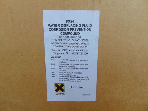 You are bidding on 16 x 1 Ltr Bottles of PX24 Water Displacing Fluid Corrosion Prevention Compound.