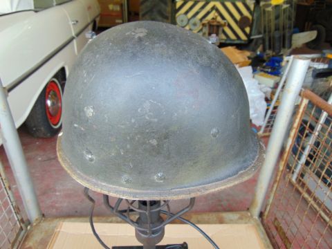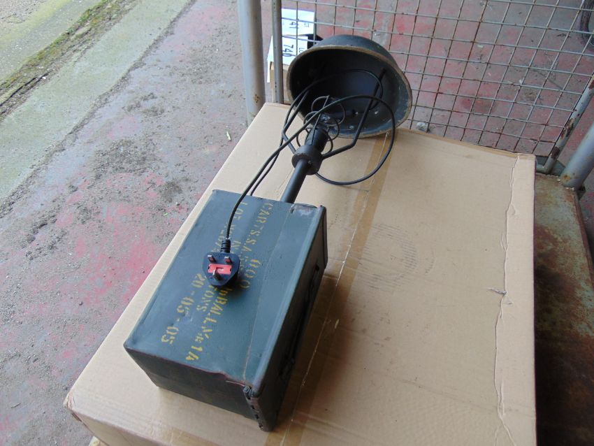 Very Unusual Military Table Lamp Made from Combat Helmet and 50 Cal Ammo Box