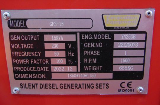 You are bidding on a 2022 New Unsued 15 KVA Silent Diesel Generator - Single Phase 230V.
