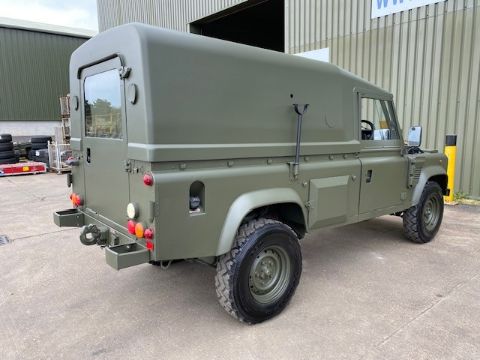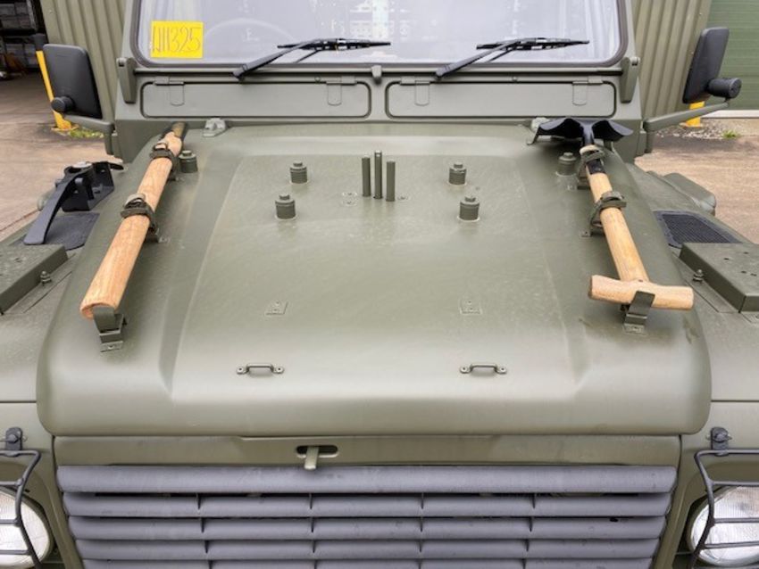 You are bidding on a Land Rover Wolf 110 Hardtop FFR RHD, Remus ugrade, fitted 300TDi 2.5 litre turbo diesel engine, R380 5 speed gearbox with high/low transfer box, 24v electrics, heavy duty ugraded chassis and axles, Goodyear G90 7.50R16 tyres and heavy duty Wolf rims, grey Vinyl seats, interior roll over protection system, sound proof matting, front and rear Jate rings, interior FFR fit (fitted for radio), rear NATO hitch and electrics.
