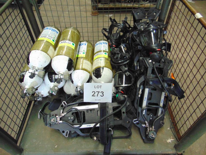 You are bidding on 5 x Drager PSS 7000 Self Contained Breathing Apparatus w/ 10 x Drager 300 Bar Air Cylinders.