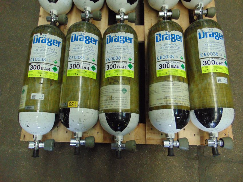 You are bidding on 5 x Drager PSS 7000 Self Contained Breathing Apparatus w/ 10 x Drager 300 Bar Air Cylinders.