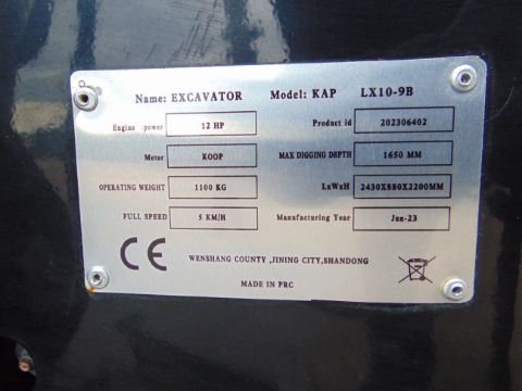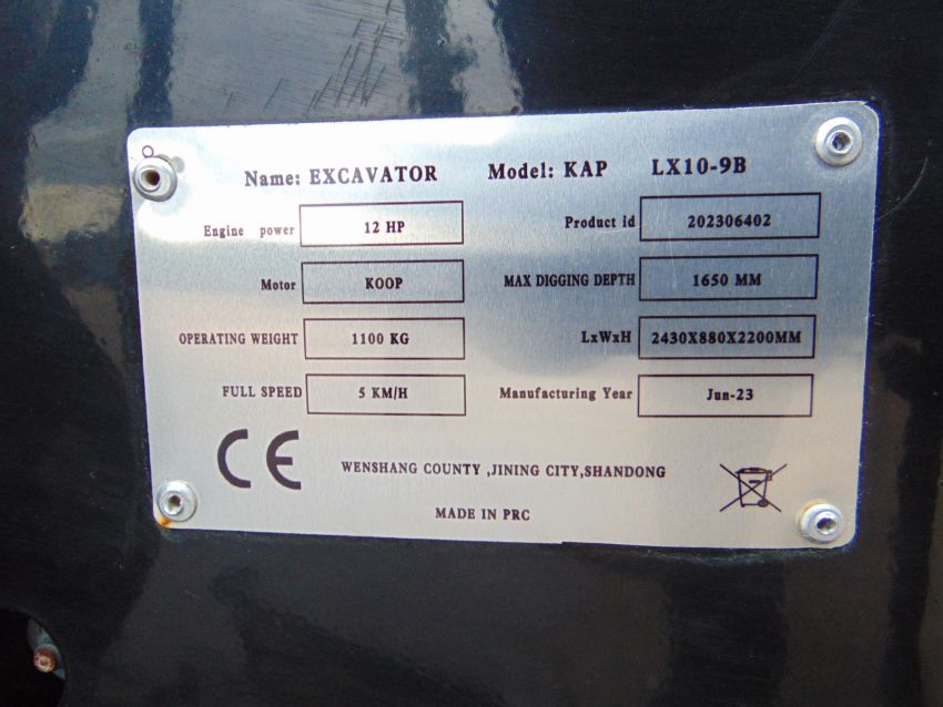 You are bidding on a New Unused 2023 KAP LX10-9B Tracked Excavator - 12 HP Diesel Engine.
