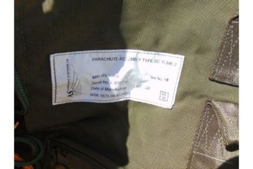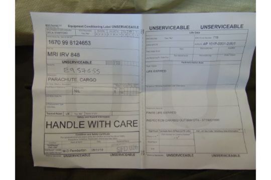 Airborn System Cargo Parachute Type SC 15 MK 2 as shown c/w Transit Bag