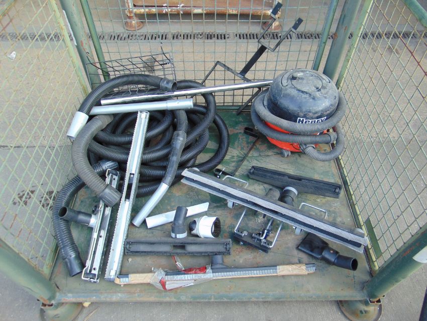 You are bidding on 1 x Euroclean Shop Vacuum & Henry Vacuum w/ Trolley, Piping, Various Attachments etc.