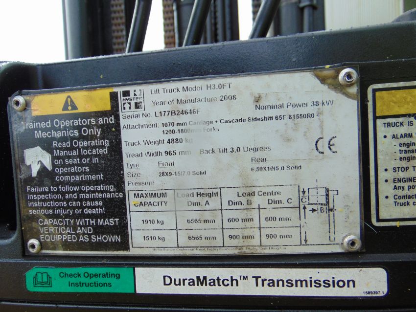You are bidding on a 2008 Hyster H3.0FT Fork Lift Truck.
