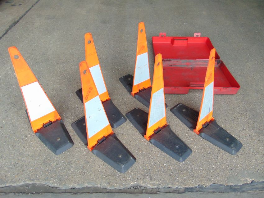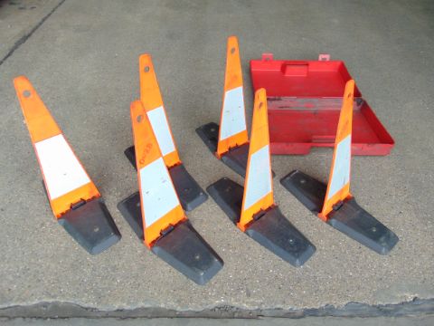 You are bidding on a Set of 6 Fold-Down Warning Cones w/ Case.