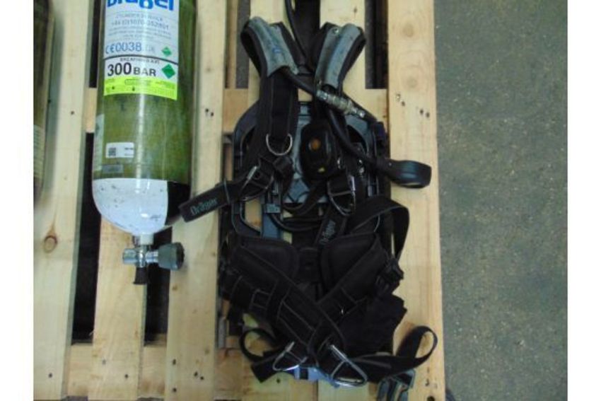 You are bidding on Drager PSS 7000 Self Contained Breathing Apparatus w/ 2 x Drager 300 Bar Air Cylinders.