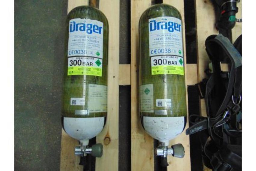 You are bidding on Drager PSS 7000 Self Contained Breathing Apparatus w/ 2 x Drager 300 Bar Air Cylinders.