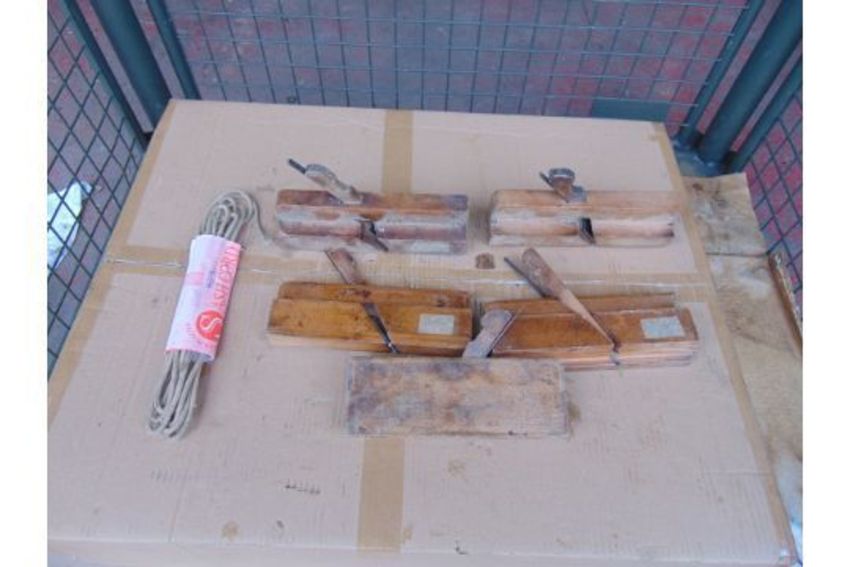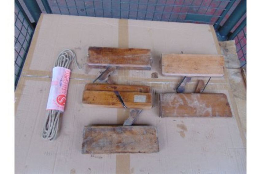 5 Antique Wood Working Tools and Sash Cord.