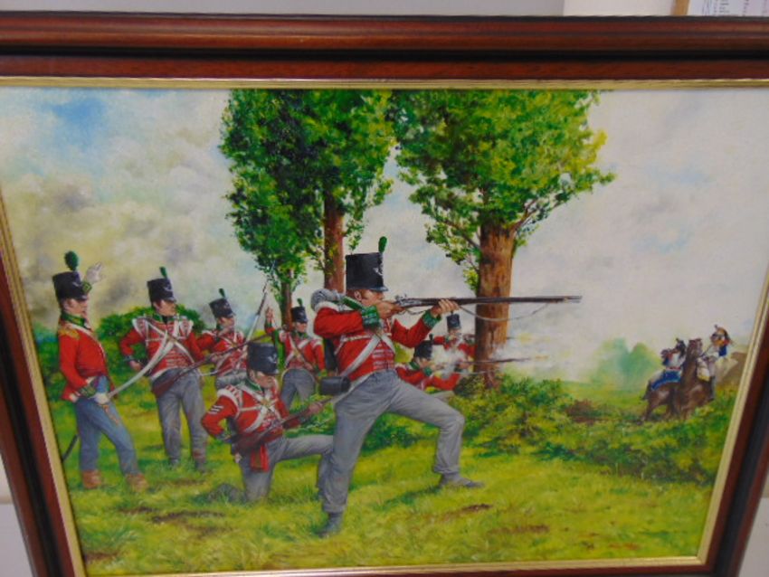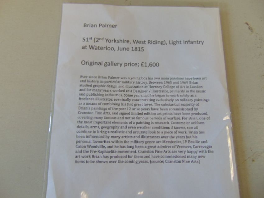 You are bidding for a Framed Oil Painting by the artist Brian Palmer 51st (2nd Yorkshire, West Riding), Light Infantry at Waterloo, June 1815.
