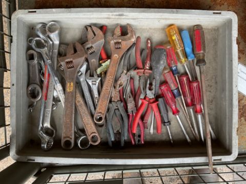 1 x Box of various Tools, Plyers, screwdrivers, Adjustable spanners & spanners.