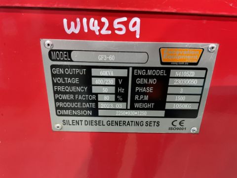 New Unissued 2023 GF 3 -60 60 KVA Diesel Generator 400/230 Volt 50 CPS 3 Phase and Single Phase.